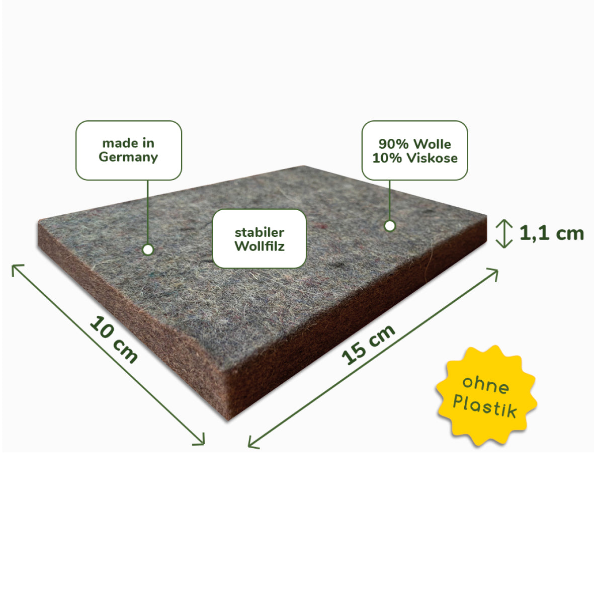 10 Wollfilzunterlagen 15 x 10 cm groß, 11mm dick als Unterlage für Prickarbeiten