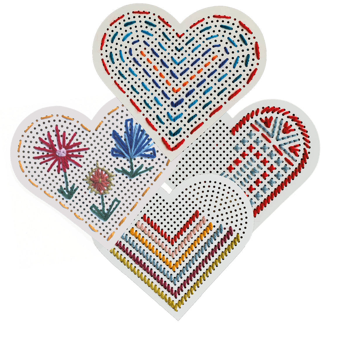 Die Herzen mit mit vielen exakten Löchern (ca. 18 x 16 cm) besteht aus hochwertigem Karton. Die Nadeln passen so gut, dass sowohl das Einfädeln auch das Sticken leicht gelingt. Damit alles ganz