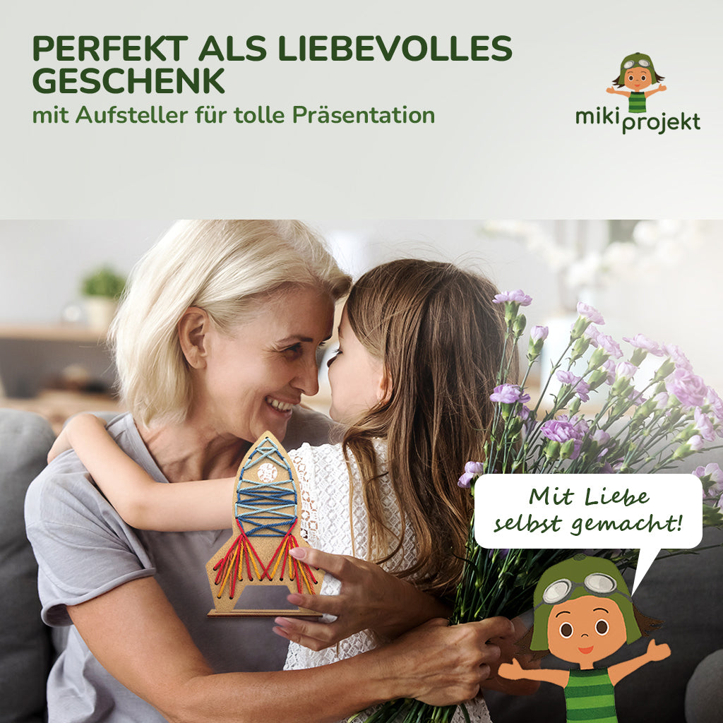 mikiprojekte sind Bastelsets, die noch lange Freude machen. Keine Einwegprodukte nach der Verwendung. Die Webplatte mit dem Aufsteller kann dauerhaft wiederverwendet werden.