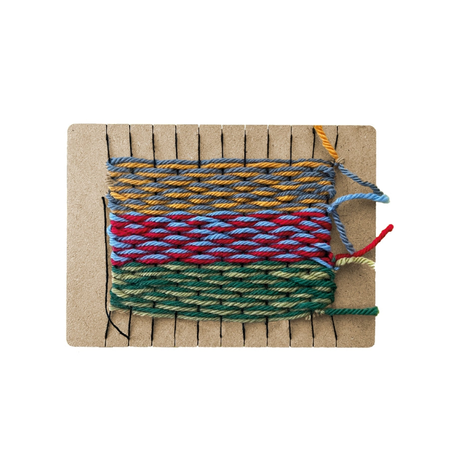5. So webst du alle Wollfäden in der Reihenfolge, die du schön findest.