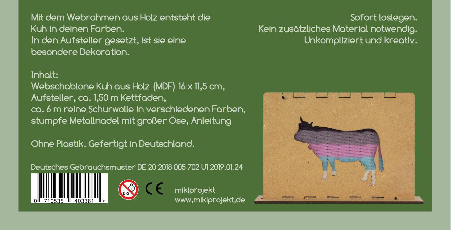 Mit diesem Webset kann man ganz einfach eine Kuh weben. Alles nötige Material ist enthalten und komplett plastikfrei.