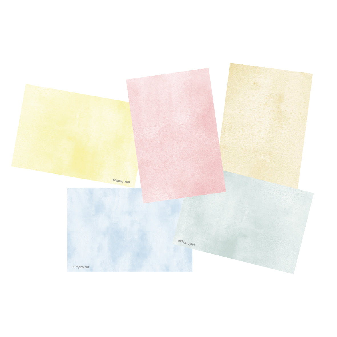 5 hochwertige Designkarten ca. 10 x 15 cm aus dickem Karton. Die Rückseiten sind in sanften Tönen bedruckt und können beschrieben werden.
