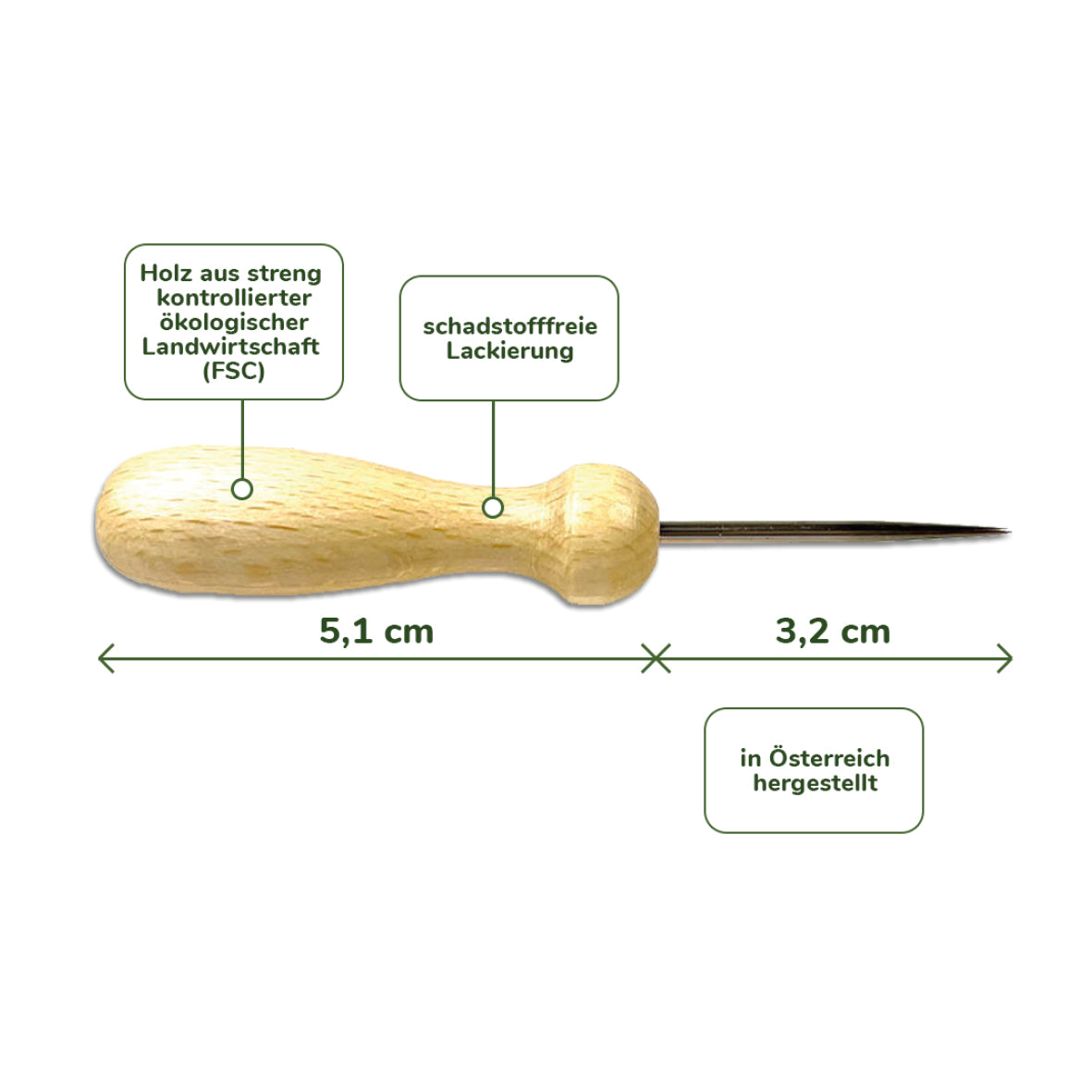 1 Prickelnadel aus Holz und Metall, ideal für kleine Hände. Schadstofffrei gefertigt in Deutschland.