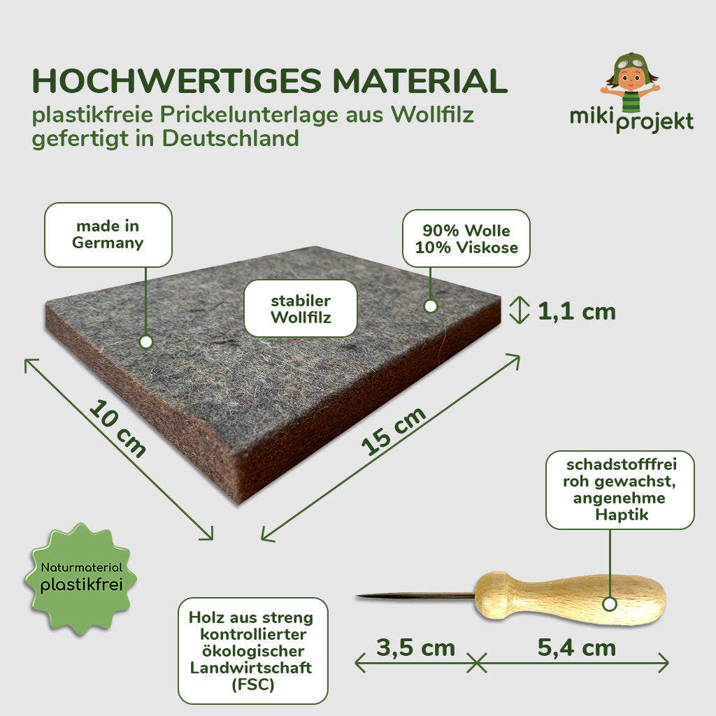 Diese wunderschöne Designkarten werden zuerst geprickelt und dann mit recycelter Wolle bestickt. Erfolg garantiert! Alles nötige Material ist enthalten und komplett plastikfrei. Das Werkzeug und