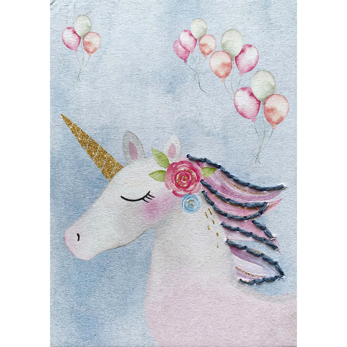Prick-Stick Set für 5 Personen: Karten gestalten "Einhorn + Ballons"