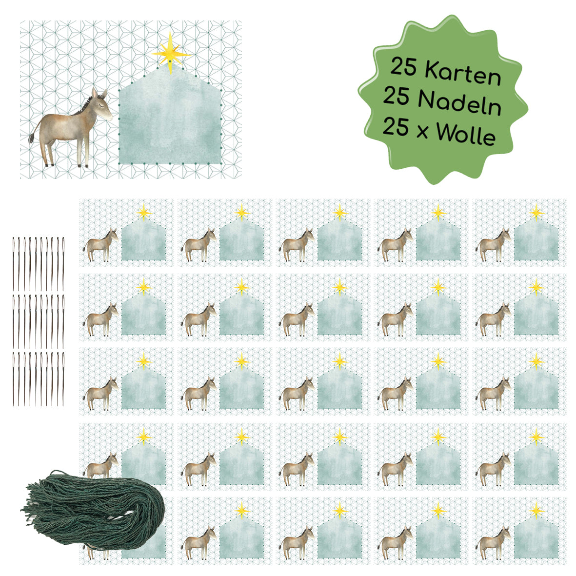 Prickeln und Sticken "Esel" - Weihnachtskarten gestalten für 25 Personen